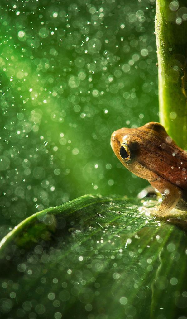 Wallpaper Frog rain waits sitting on a leaf