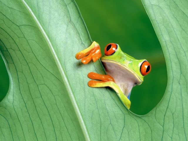 Wallpaper Red-eyed frog over green leaf