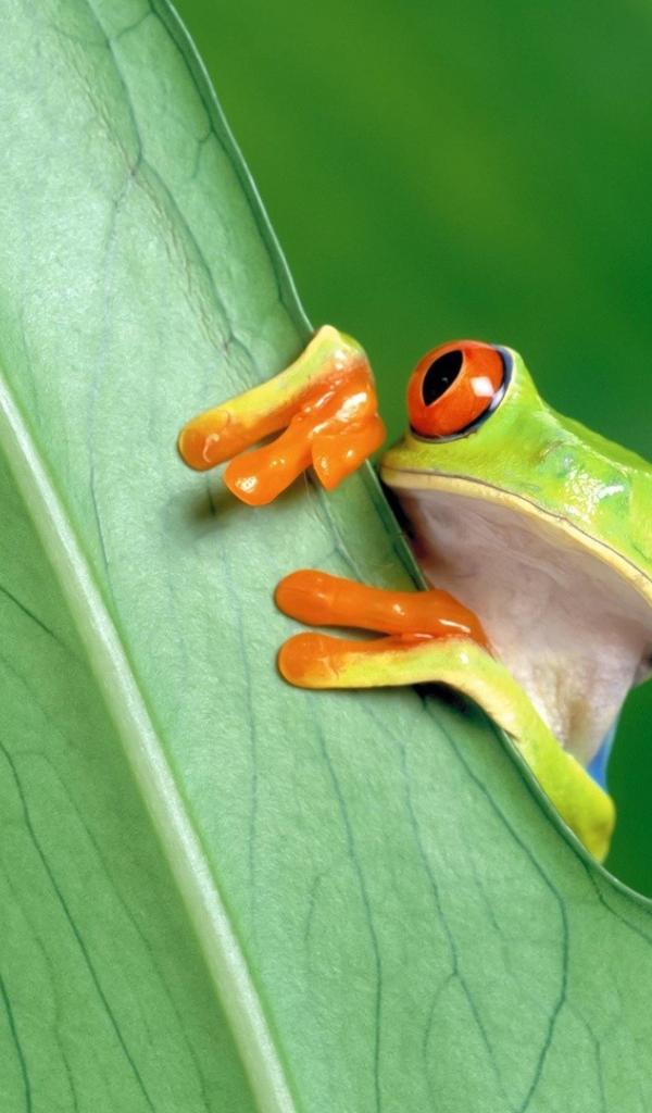 Wallpaper Red-eyed frog over green leaf