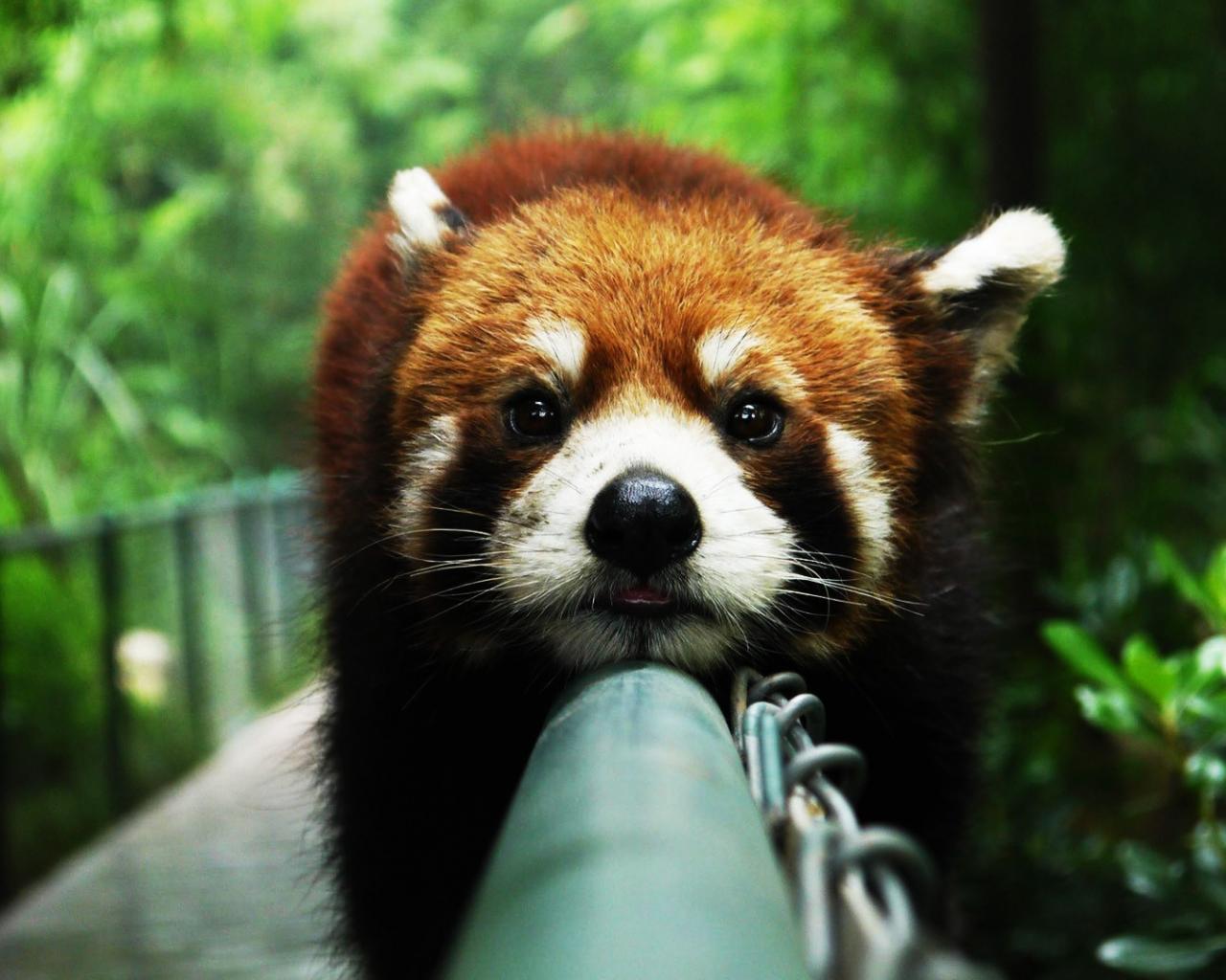 Wallpaper Red panda on the fence