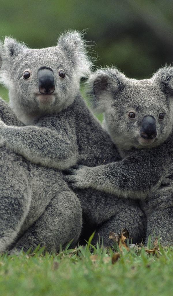 Wallpaper Four koalas on the lawn