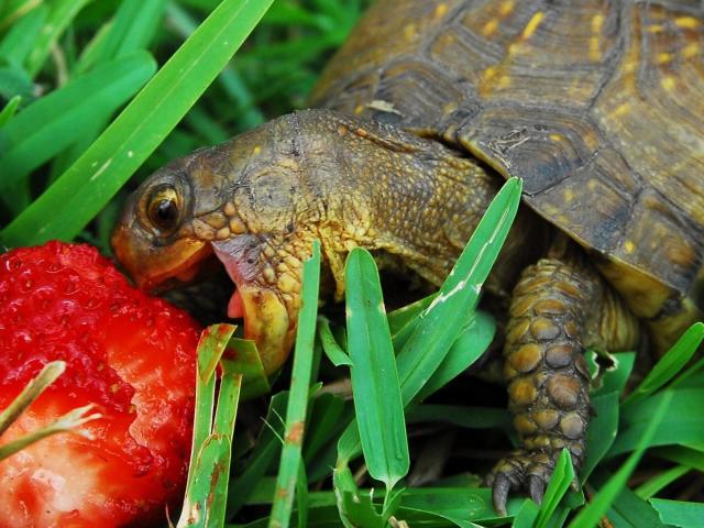 Wallpaper Tortoise eating strawberries