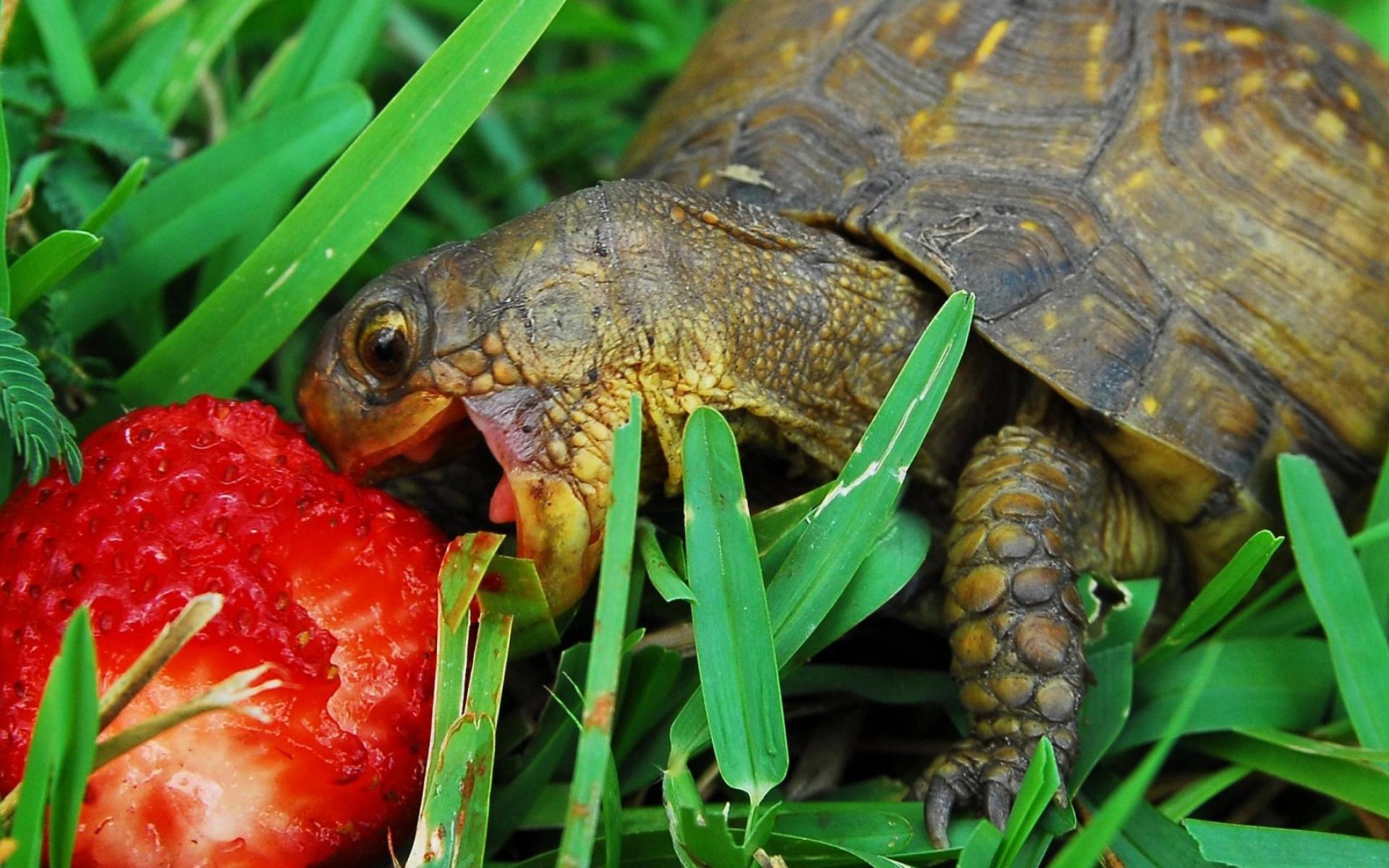 Wallpaper Tortoise eating strawberries