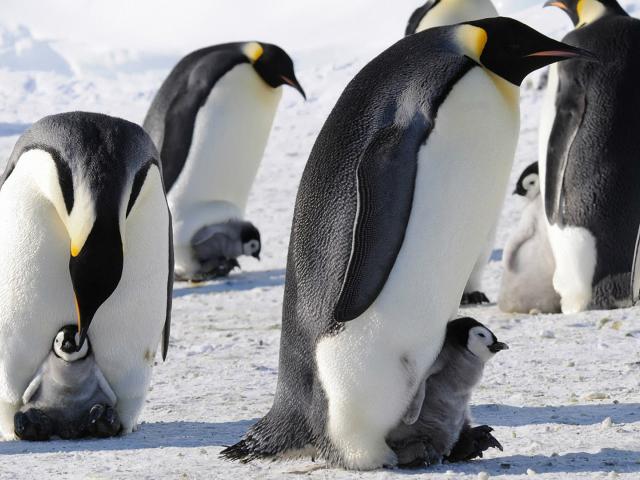 Wallpaper Emperor penguins with cubs