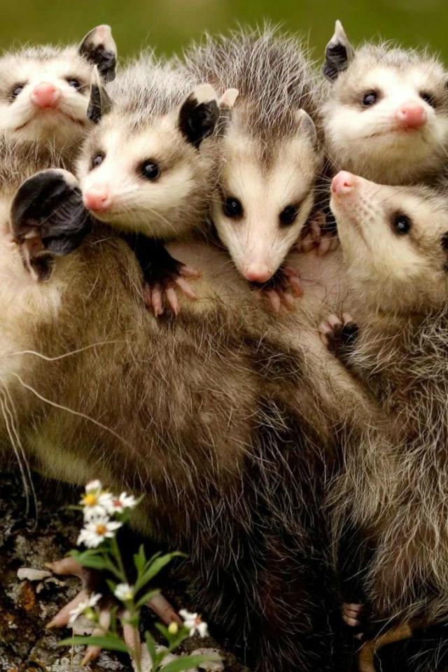 Wallpaper Cubs opossum cling to the back of his mother
