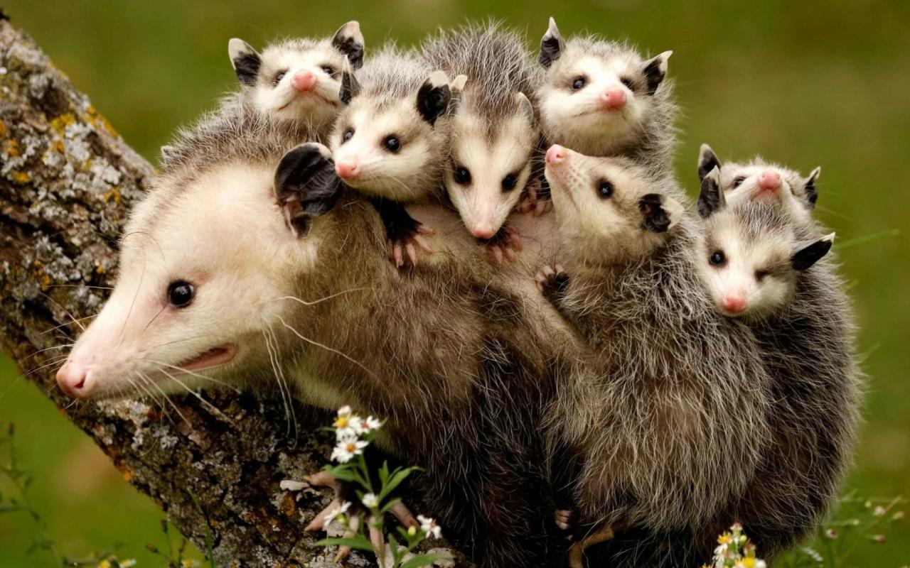 Wallpaper Cubs opossum cling to the back of his mother