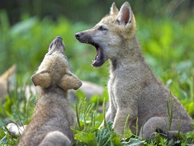 Wallpaper Two young animals on grass