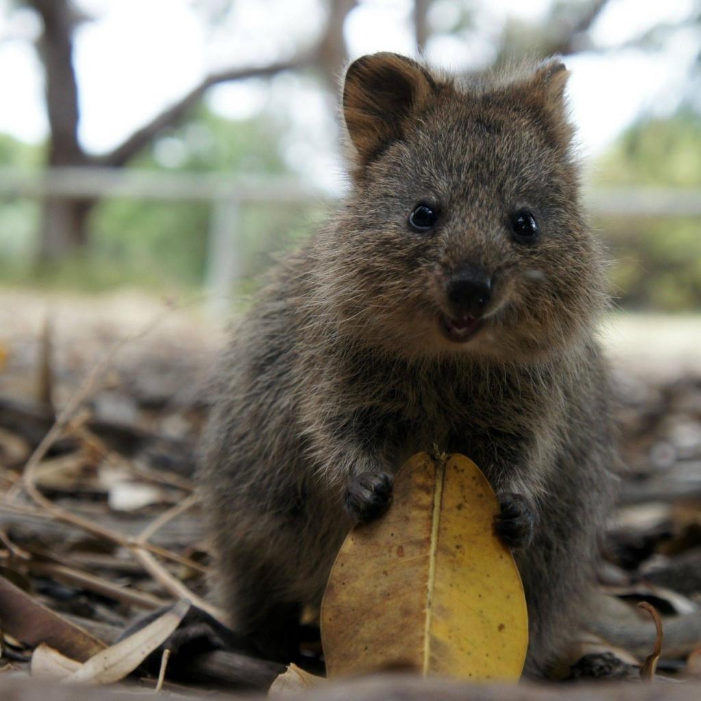Wallpaper Cute animal with a leaf in the legs