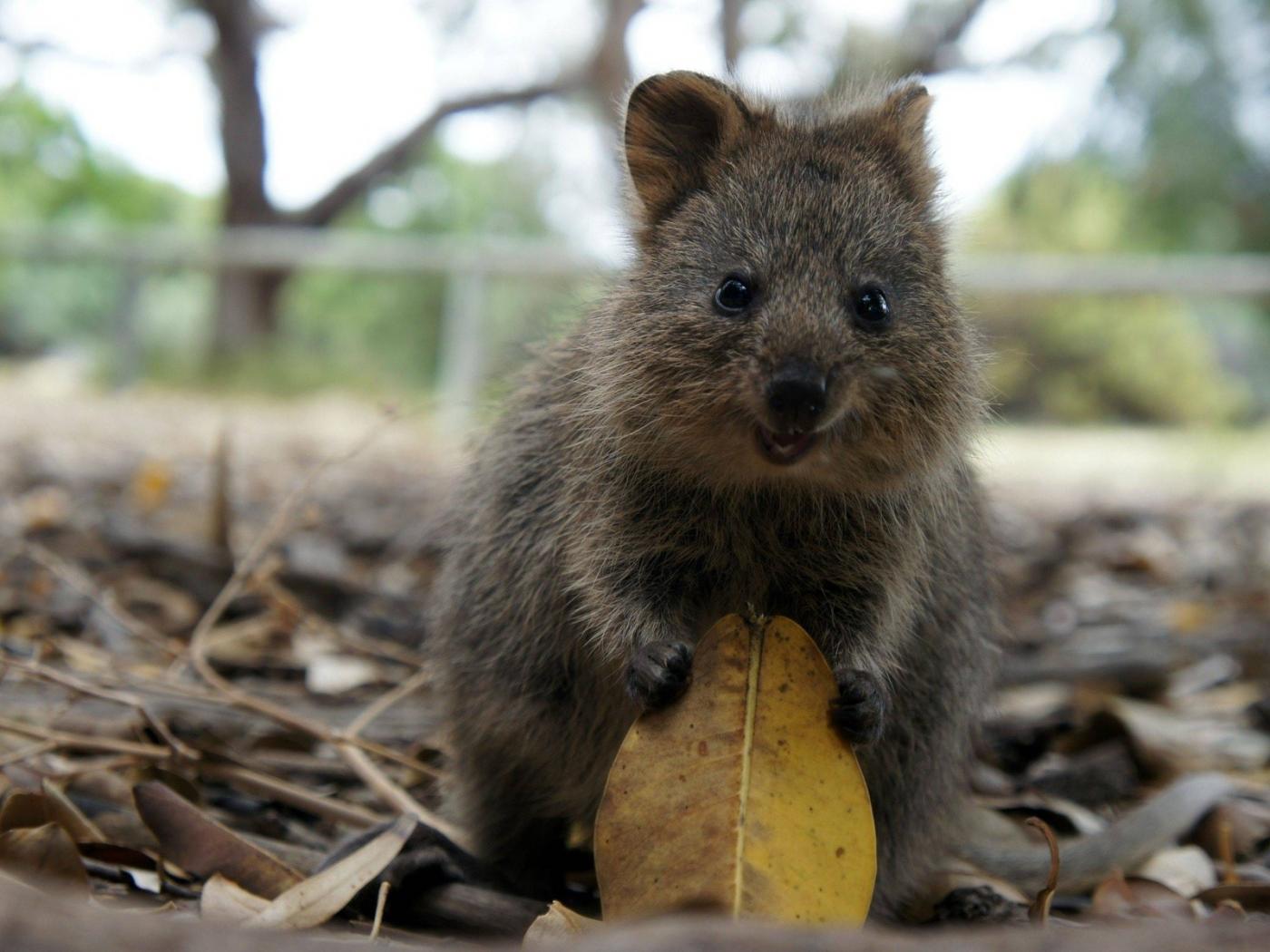 Wallpaper Cute animal with a leaf in the legs