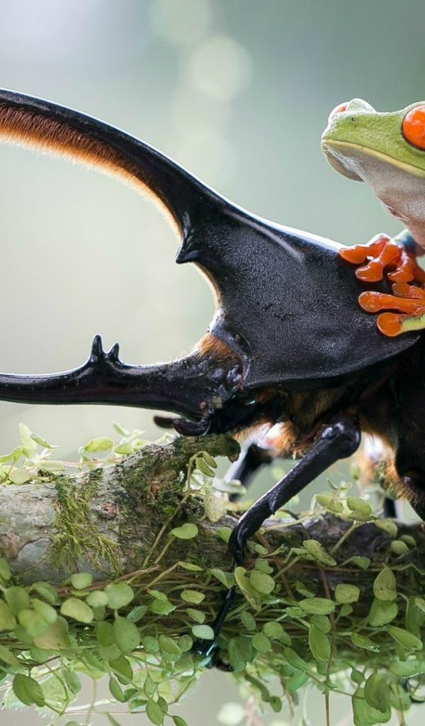 Wallpaper Horned beetle frog straddled