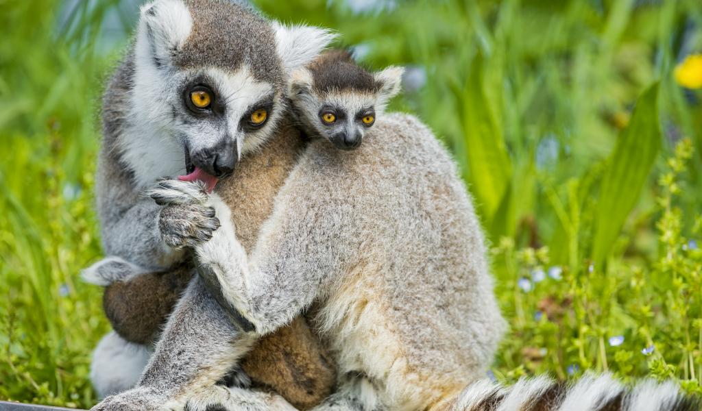Wallpaper Lemur with cub