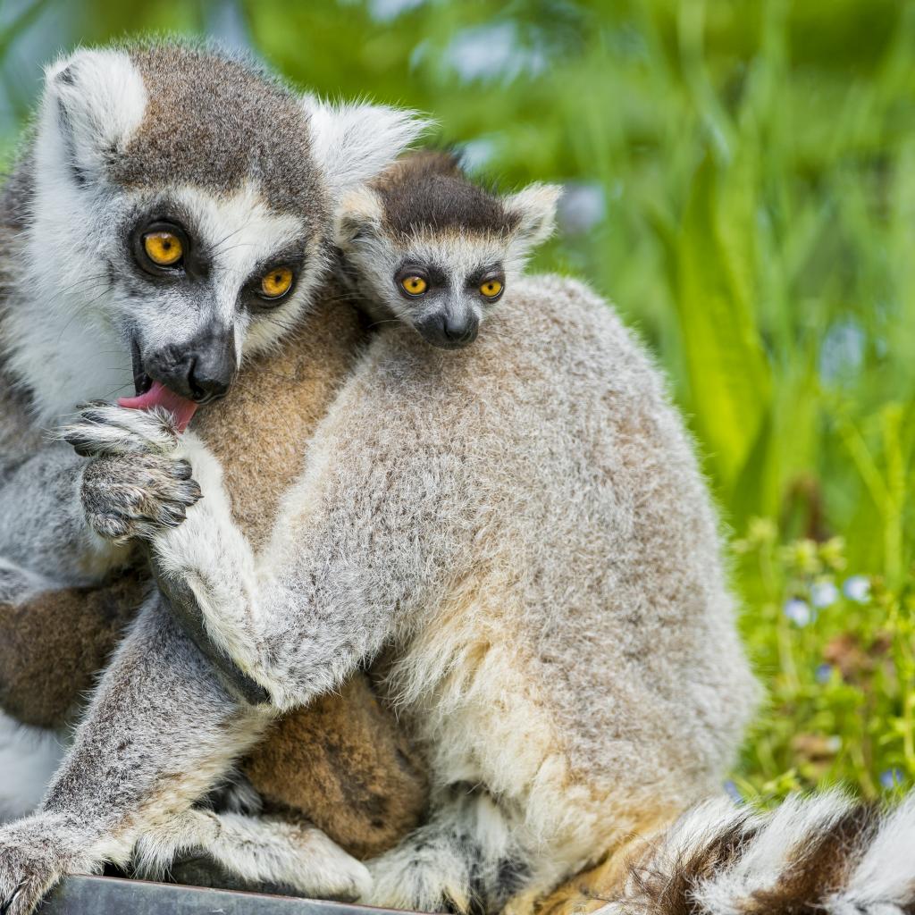 Wallpaper Lemur on the neck of a giraffe, cartoon