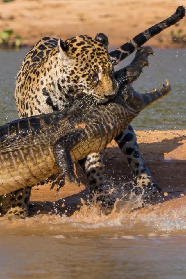 Wallpaper Fighting jaguar and crocodile