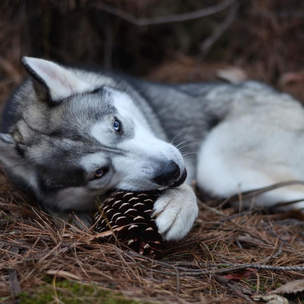 Wallpaper Muzzle, Grass, Pine cones, ears