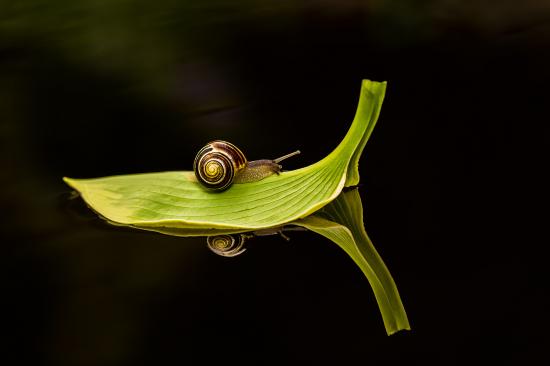 Wallpaper Black background, Leaves, Reflection, Snail, Macro