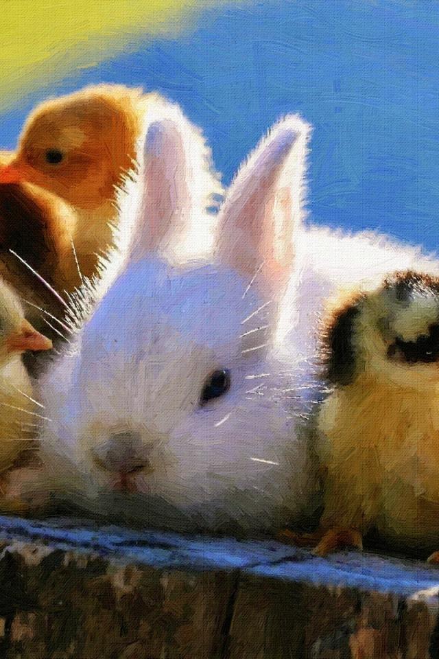 Wallpaper Bunny among yellow chicks