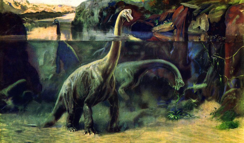 » Wallpaper Herbivorous dinosaurs in water