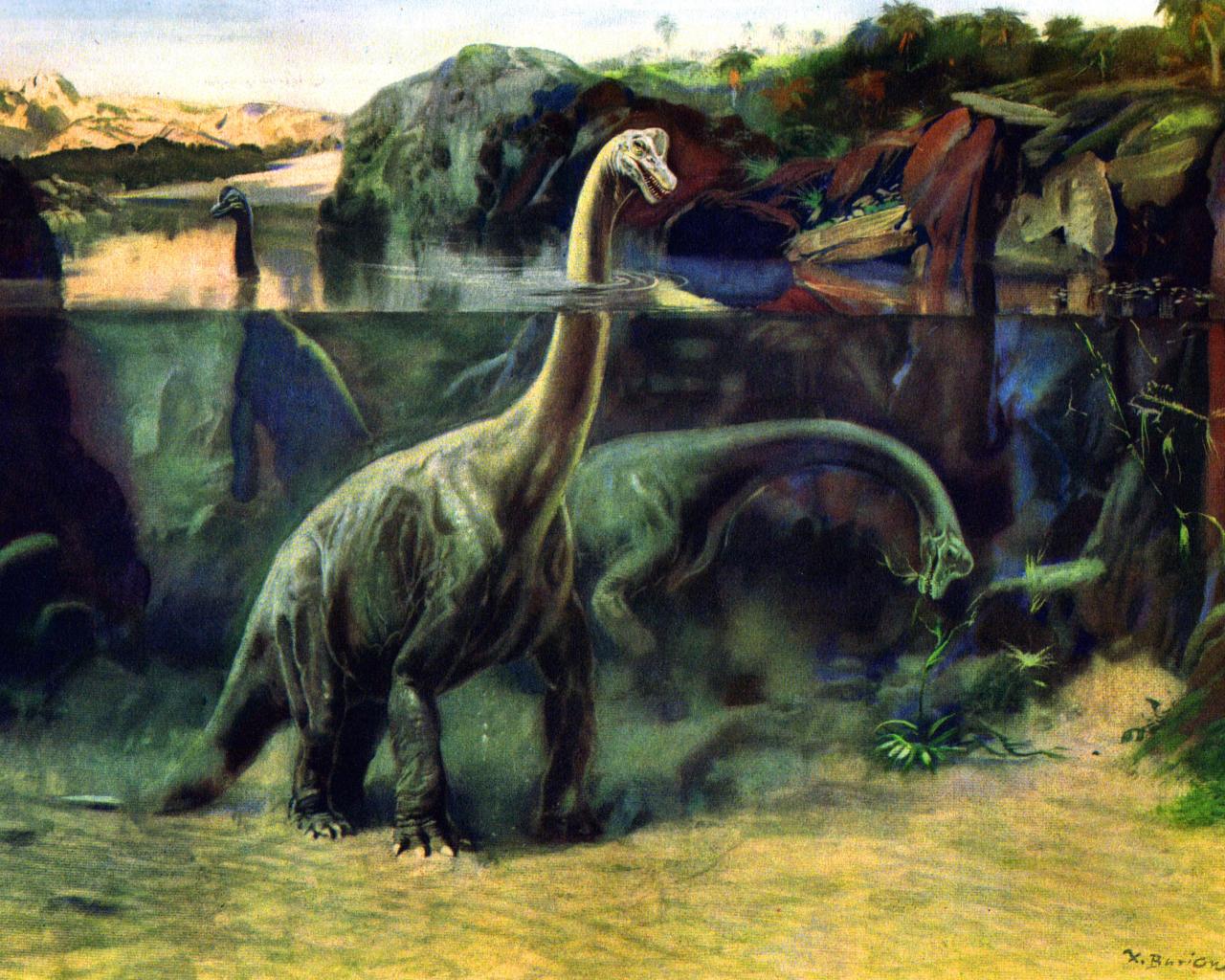 » Wallpaper Herbivorous dinosaurs in water