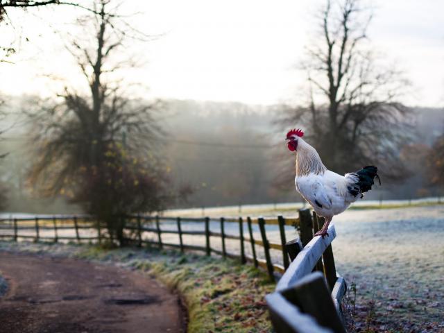 Wallpaper White rooster on a fence
