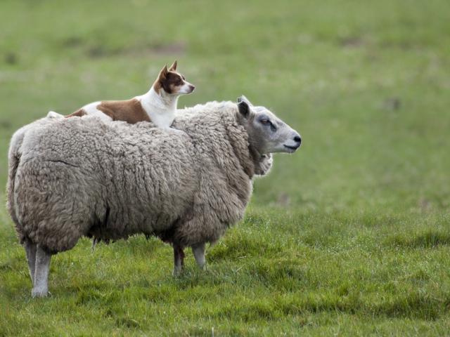 Wallpaper Dog sitting on the sheep