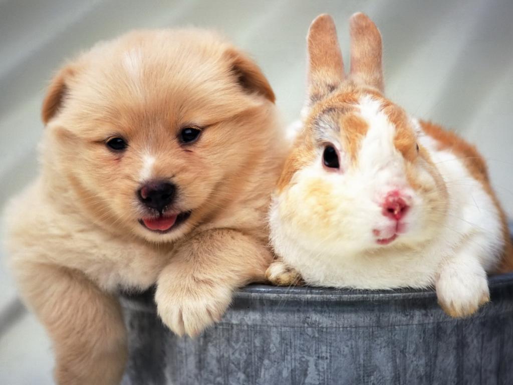 Wallpaper Puppy and rabbit
