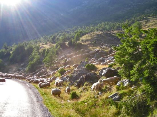 Wallpaper A flock of sheep crossing the road
