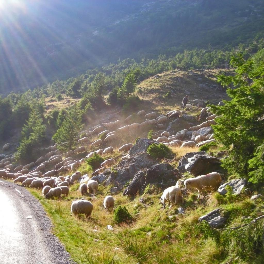 Wallpaper A flock of sheep crossing the road