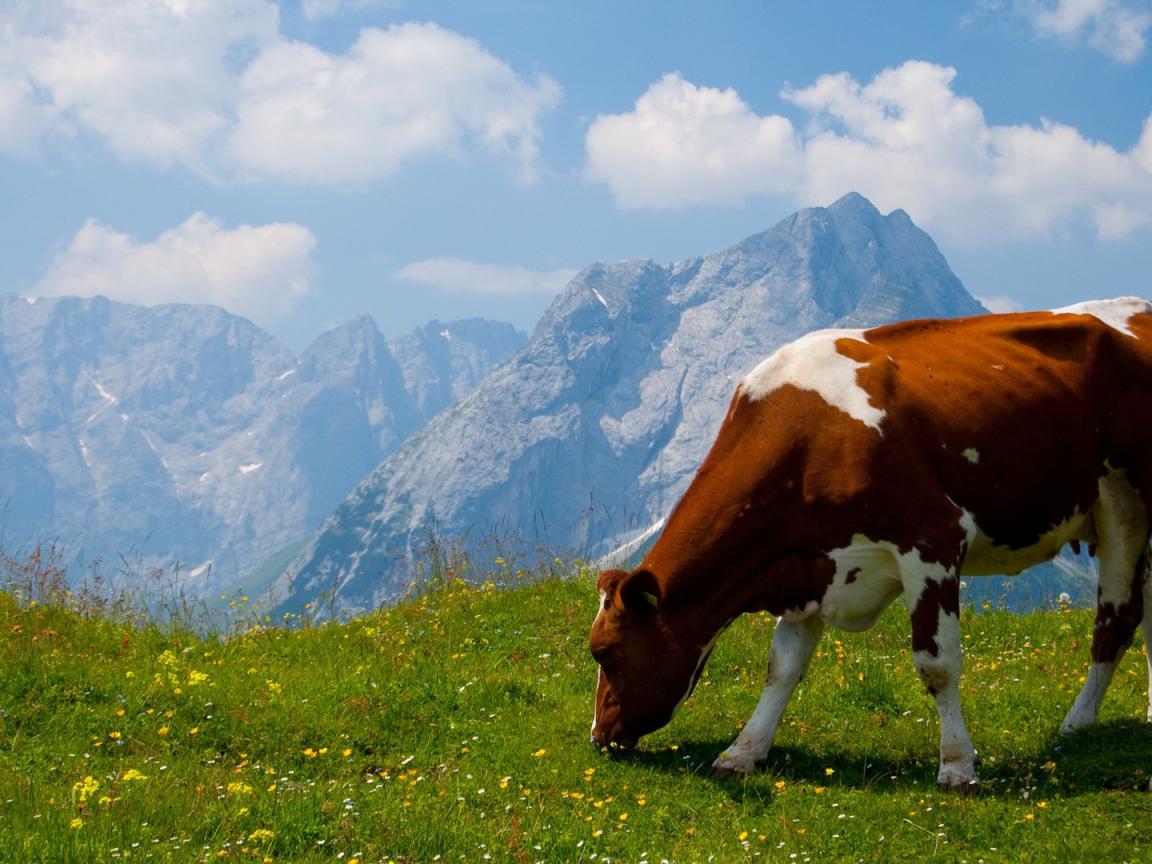 Wallpaper The cow in the Alpine field