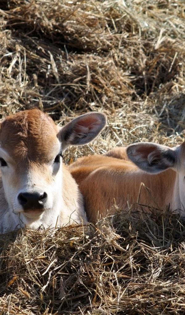 » Wallpaper Calves, lying in the manger