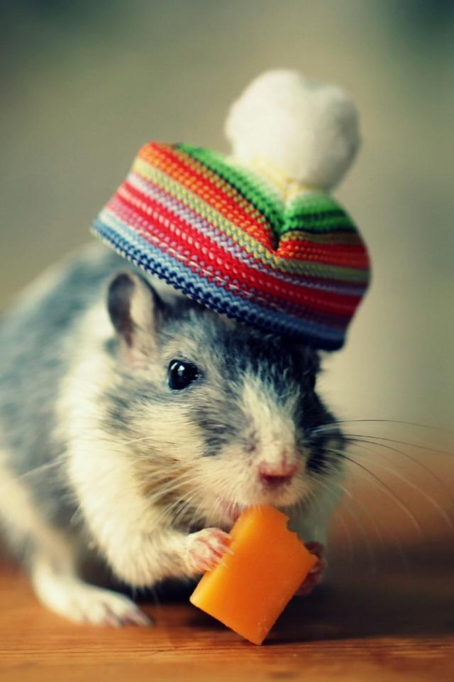 Wallpaper Mouse in the hat eats cheese