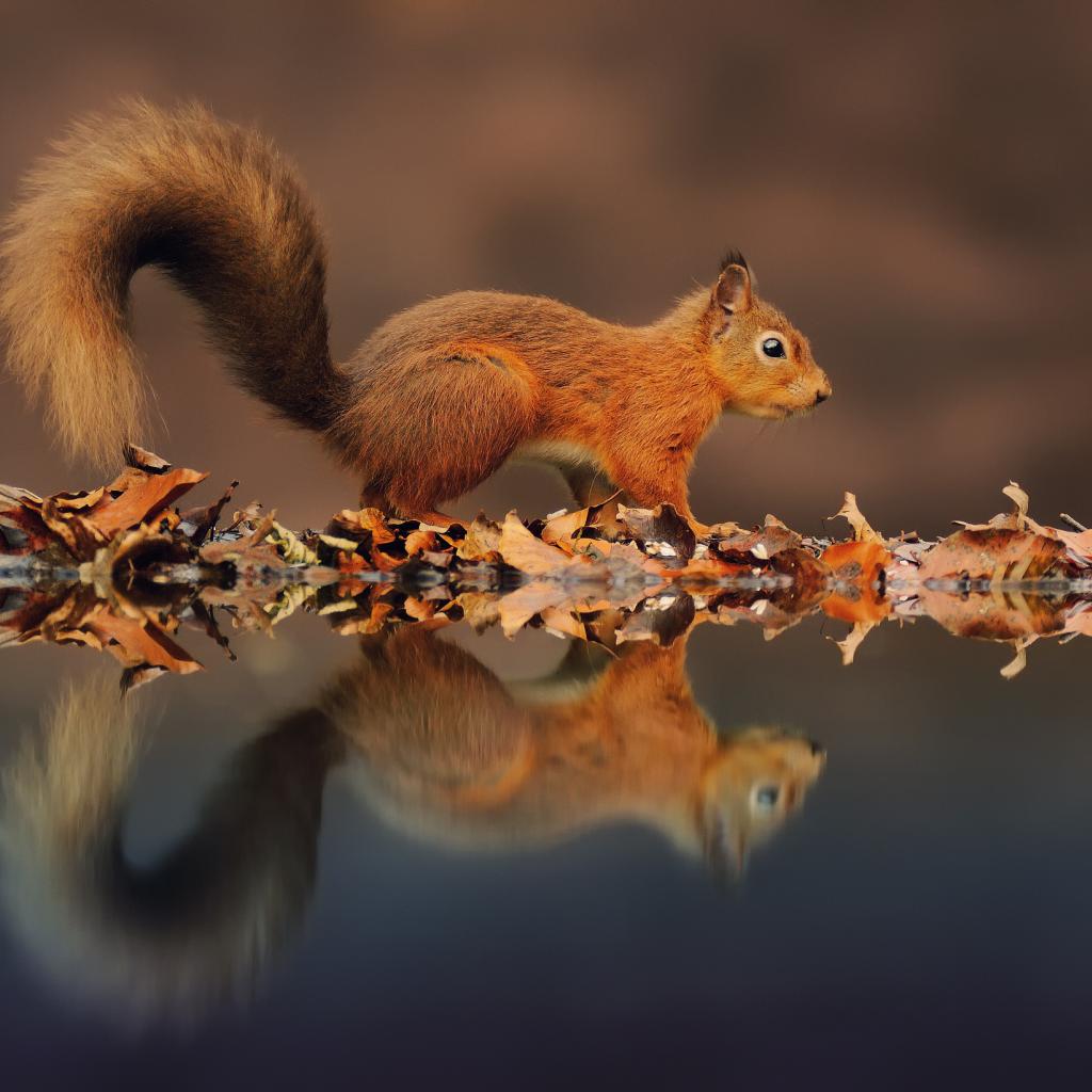 Wallpaper Squirrel and its reflection