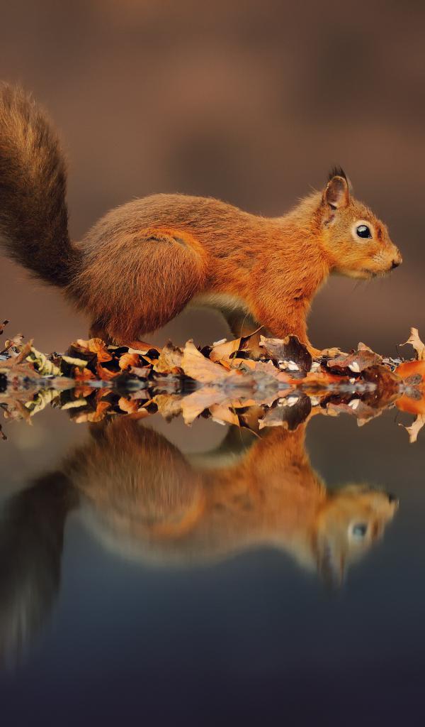 Wallpaper Squirrel and its reflection