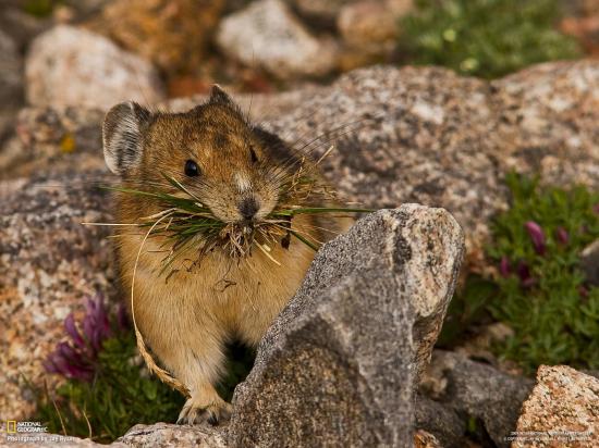 Wallpaper Animal with grass in his mouth