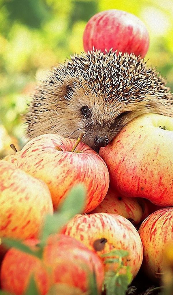 Wallpaper Hedgehog on apples