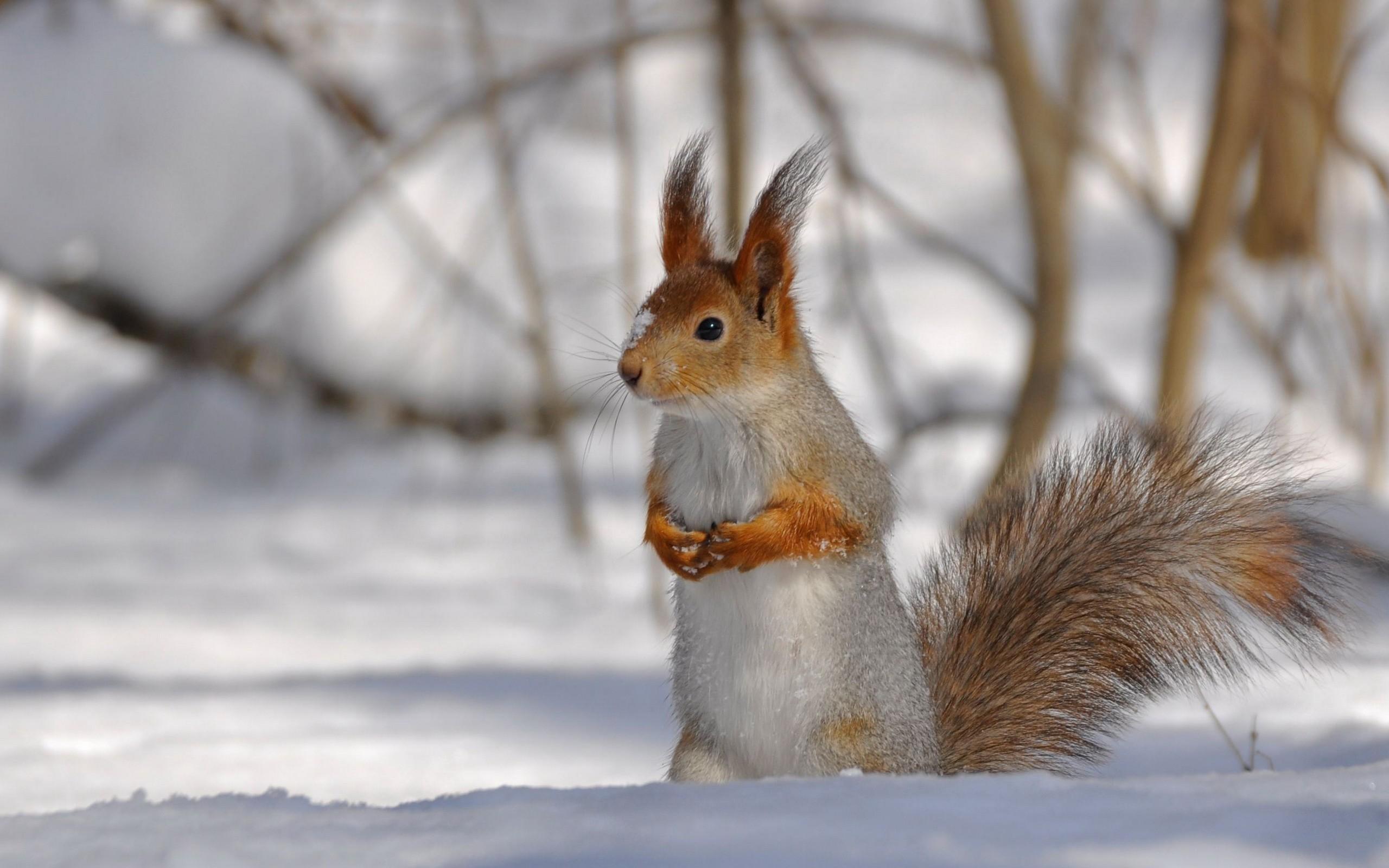Wallpaper Squirrel sitting on the snow