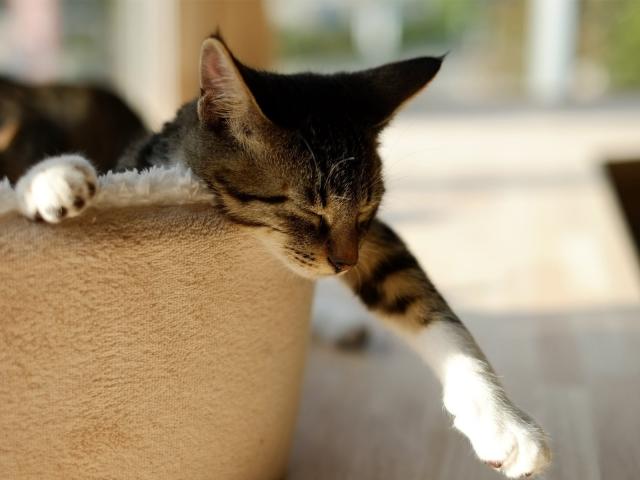 Wallpaper Domestic cat sleeping in a basket