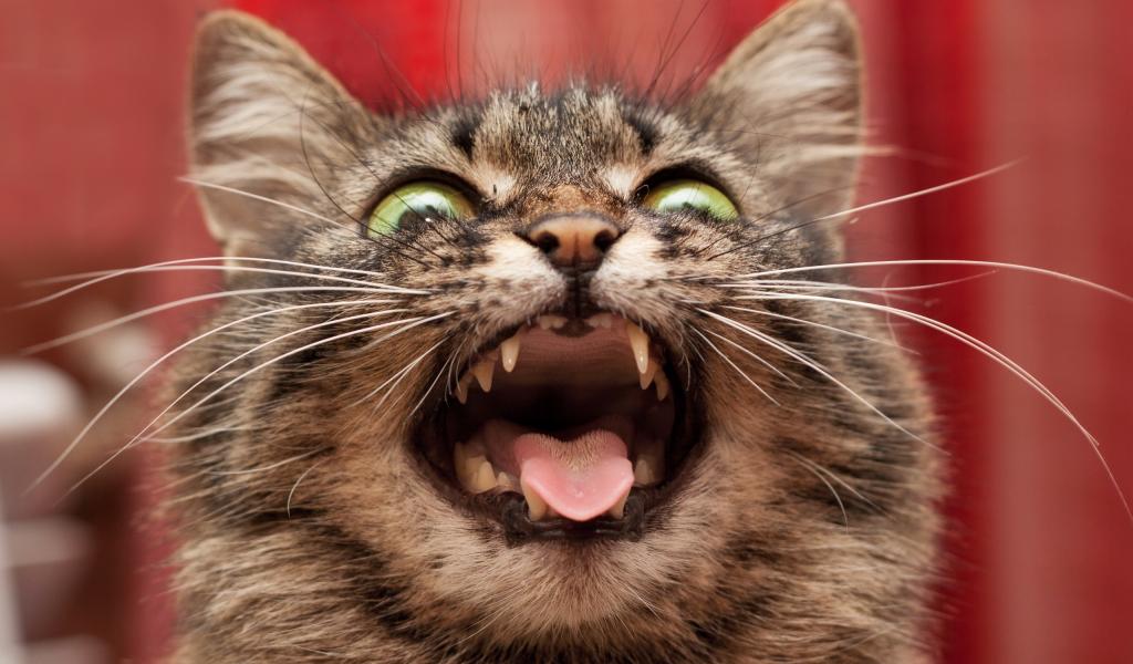 Wallpaper Crazy cat on a red background
