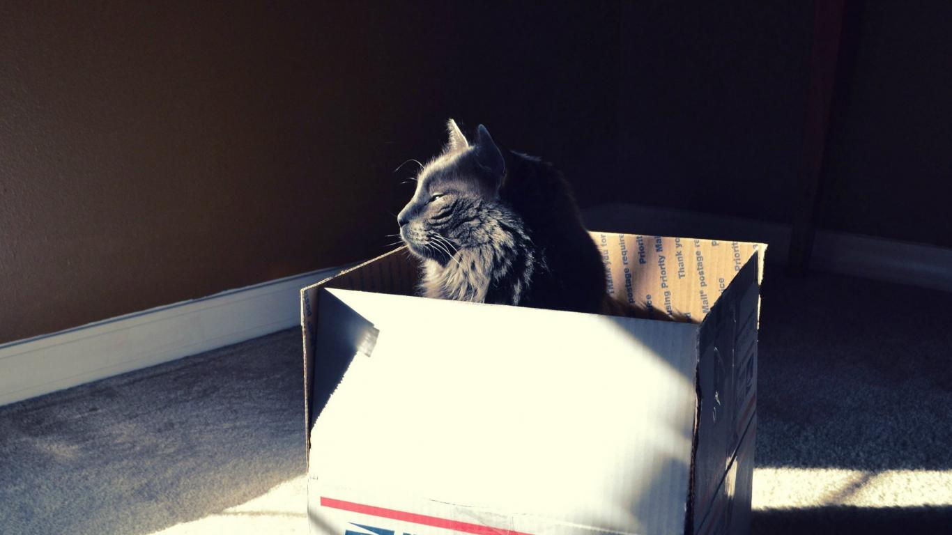 » Wallpaper Black cat in a cardboard box