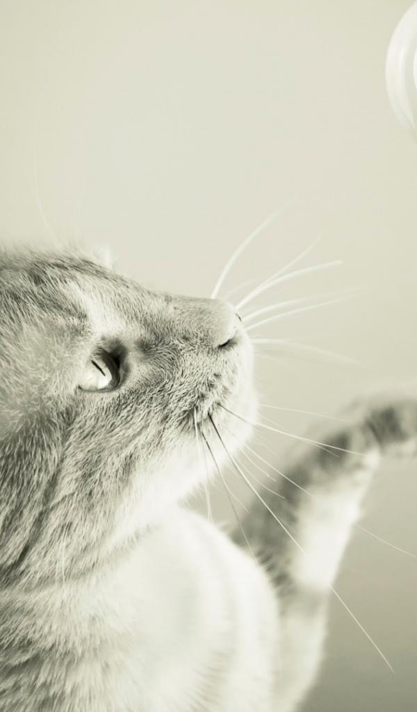 Wallpaper Gray cat hunts on the bubble