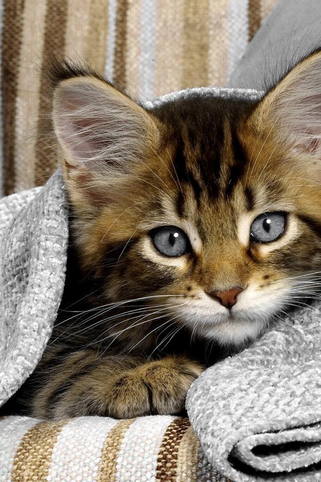 Wallpaper Gray-eyed kitten under the towel