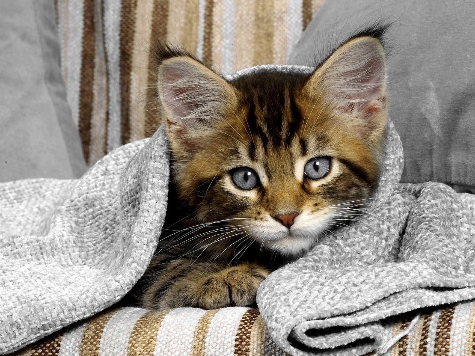 Wallpaper Gray-eyed kitten under the towel