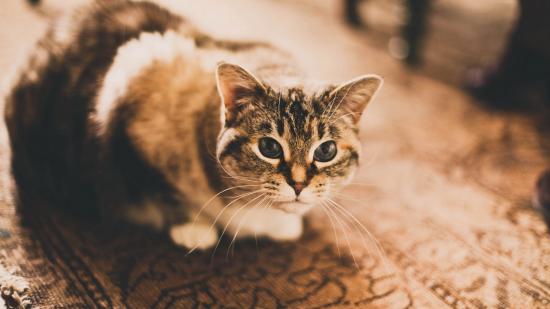 Wallpaper Domestic cat sitting on the carpet