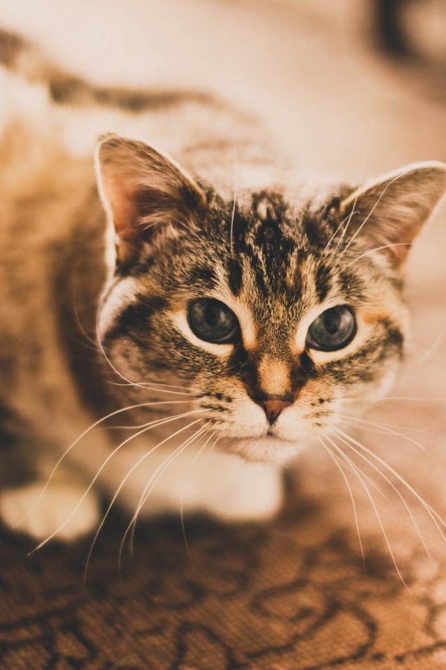 Wallpaper Domestic cat sitting on the carpet
