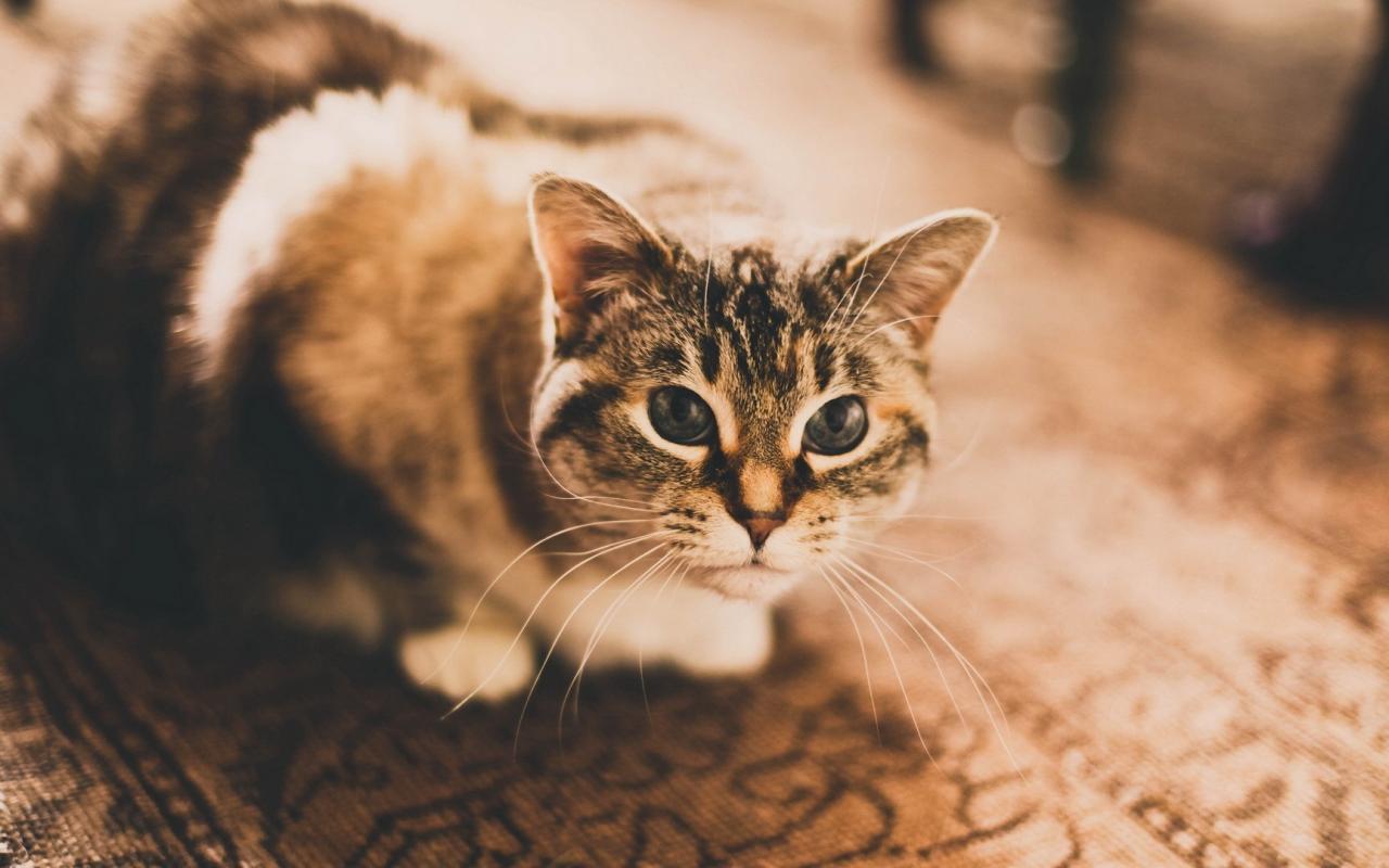 Wallpaper Domestic cat sitting on the carpet