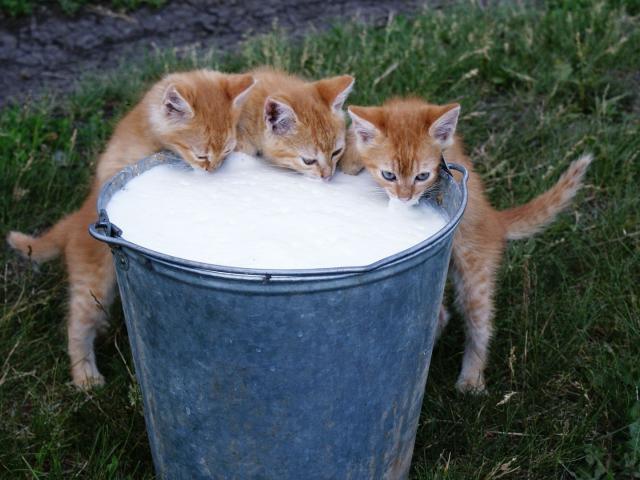 Wallpaper Red kittens drinking milk from a bucket