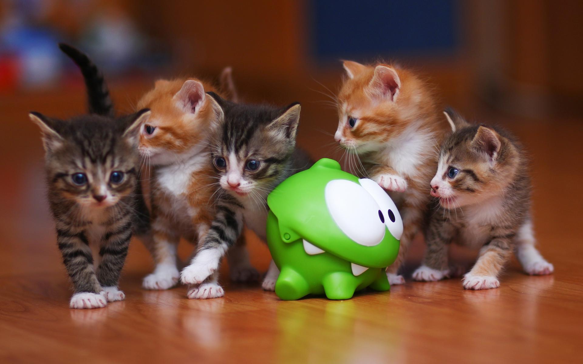 Wallpaper Five kittens with toy