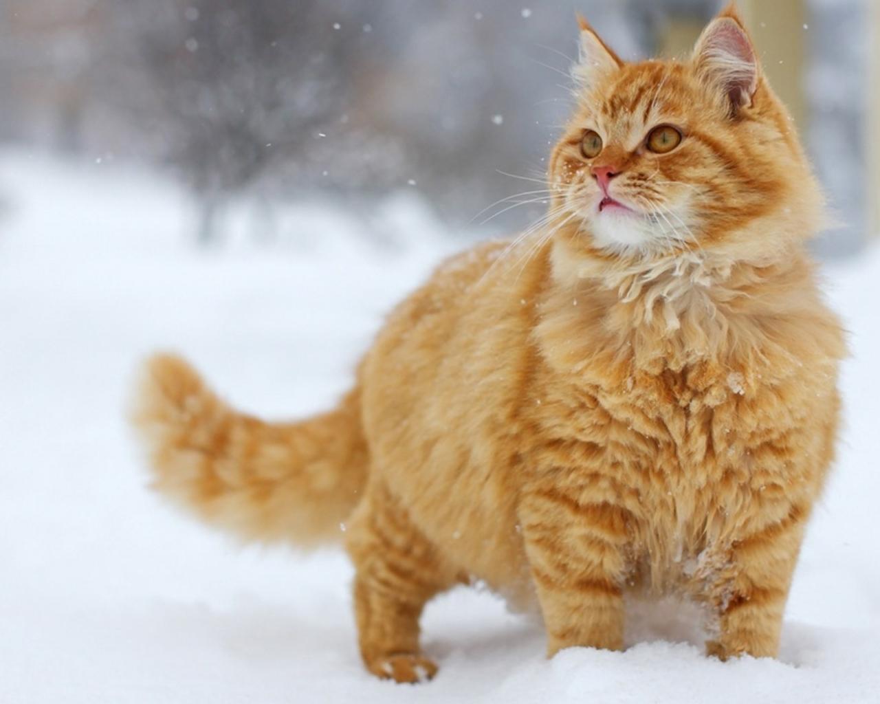 Wallpaper Fluffy ginger cat in the snow