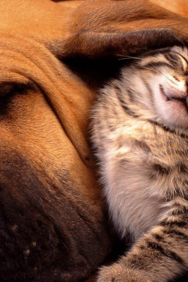 Wallpaper Kitten under the ear big dog