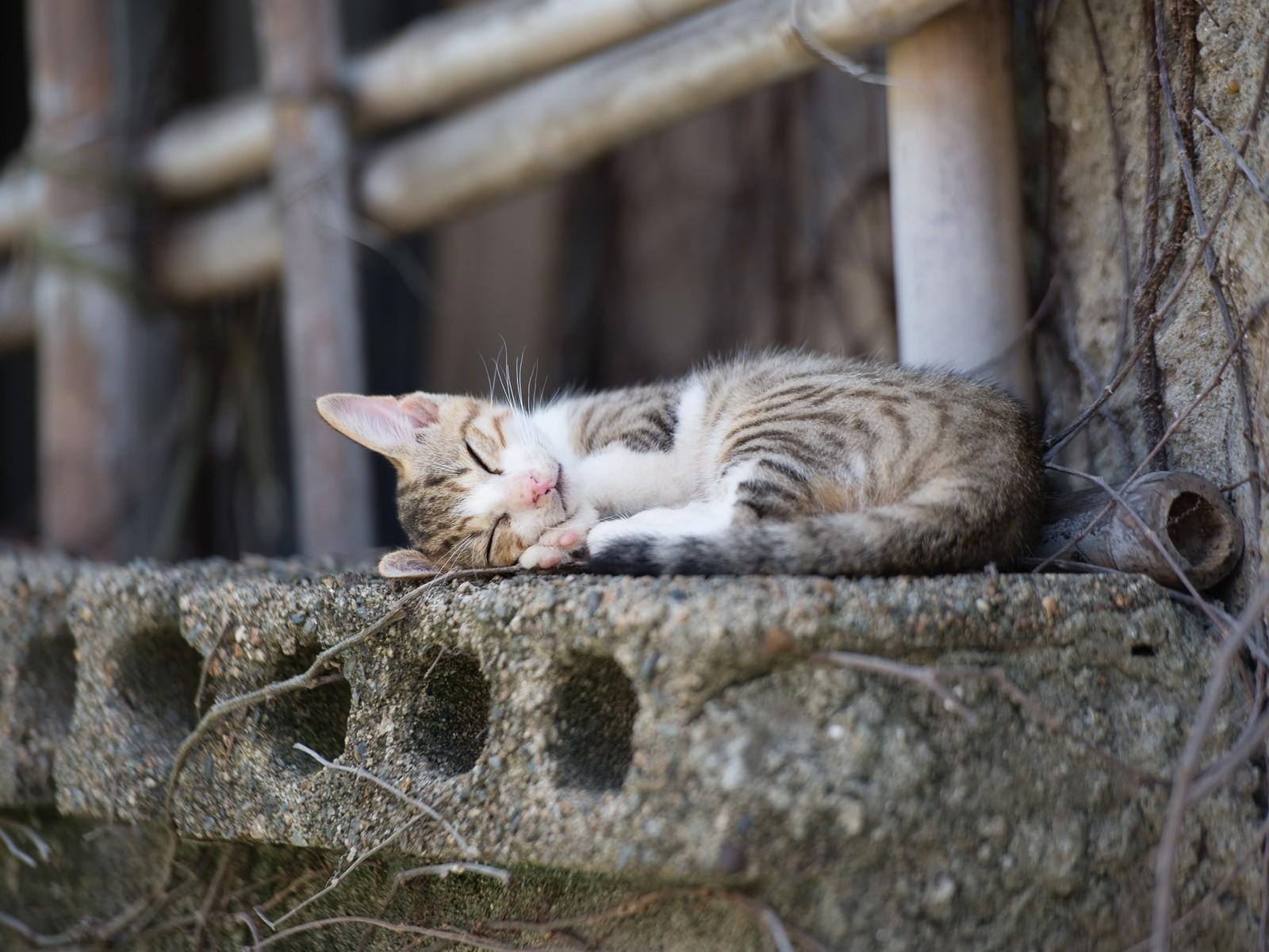 Wallpaper Cat sleeping on a concrete slab