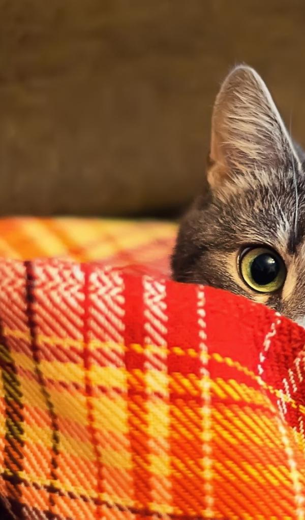 Wallpaper Cat hiding in a blanket